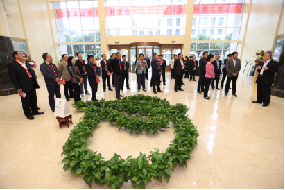 在青藏物流中心一樓大廳,醒目的黨建展板、綠植搭建的LOGO、成排的成果照片展示了集團"紅色文化、綠色發展"理念。集團黨委書記王玉輝向觀摩團介紹了集團近年來黨建工作情況、園區建設、產業布局、社會責任、關愛員工以及領導關懷和榮譽成果。